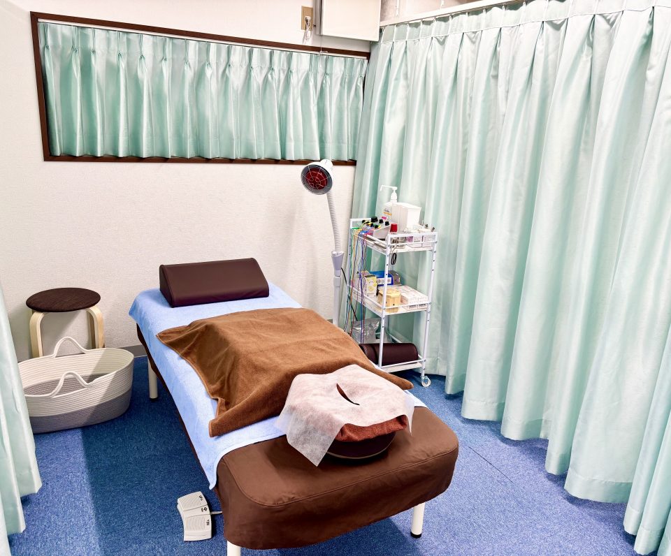 当院では、カーテンに仕切られた広めの個室空間で施術を行っています。