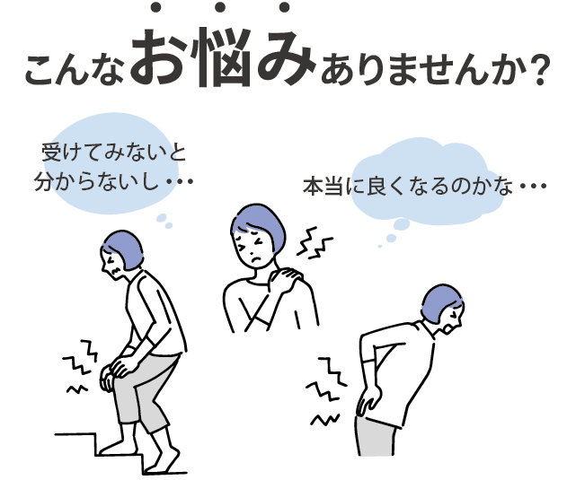 お一人お一人異なる生活背景を踏まえた上で、適切な施術方針を立てていきますので、ご不明なことがあれば遠慮なくお話しください。